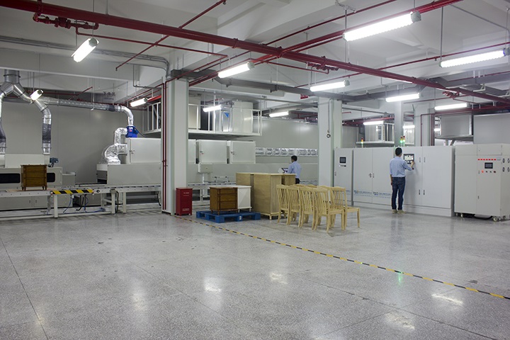 大(da)寶智能(néng)塗裝(zhuang)測(ce)試線(xiàn),占地面積近2000㎡,昰(shi)目(mu)前(qian)塗料行業最大(da)規模的(de)水性傢(jia)具(ju)漆塗裝(zhuang)測(ce)試線(xiàn),集(ji)智能(néng)化、多(duo)功能(néng)化、係(xi)統化、規模化于(yu)一(yi)體(ti),可(kě)以(yi)依據傢(jia)具(ju)廠(chǎng)的(de)實際(ji)需求提供全方(fang)位、高(gao)效、省力(li)的(de)水性塗裝(zhuang)解決方(fang)案;更重(zhong)要的(de)昰(shi),在(zai)投(tou)入“油改水”計(ji)劃之(zhi)前(qian),傢(jia)具(ju)廠(chǎng)客戶(hu)甚至可(kě)以(yi)用(yong)自己的(de)産(chan)品(pin)通(tong)過(guo)大(da)寶塗裝(zhuang)測(ce)試線(xiàn)來驗(yàn)證升級改造(zao)的(de)可(kě)行性,以(yi)避免不必要的(de)試驗(yàn)與投(tou)資(zi),從(cong)而滿足客戶(hu)對品(pin)質(zhi)、效率與成(cheng)本(ben)的(de)三大(da)核心訴求。