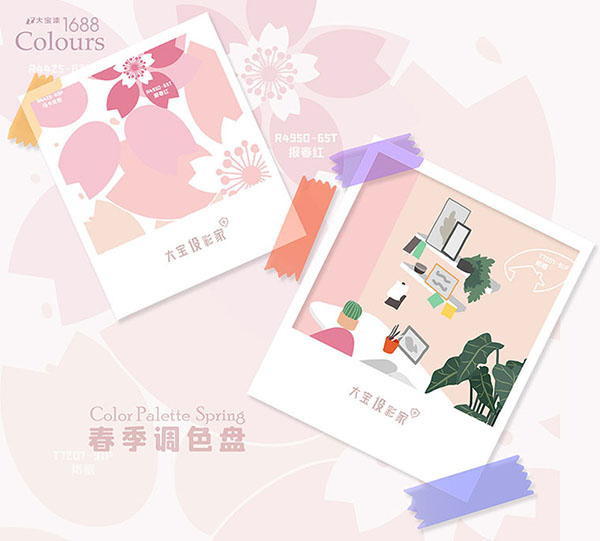 大(da)寶設(shè)彩傢(jia)彙整了(le)粉、青與橙色配(pei)色小(xiǎo)卡,借一(yi)縷春風,刷出滿室春意盎然,爲(wei)傢(jia)換上春日(ri)半暖時光!